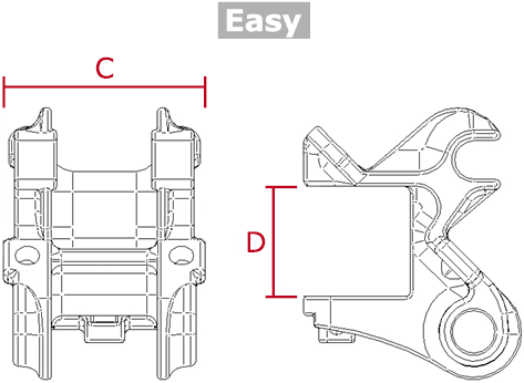 Chisel assembly for 80x80 frame with different frame mountings. All fitted with spring 2424-E. Bushings are protected with nylon to avoid greasing. Positions and anti-rotation nuts preventing bolts and nuts from loosening in the field. Recommended power is indicative and will depend on ground conditions, machine, etc.